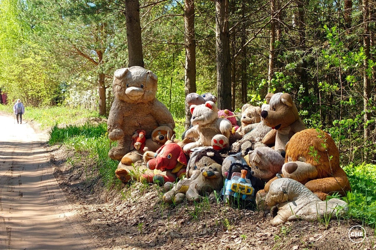 На подъезде к деревне Чежеги путешественников радует необычный «арт-объект» в виде мягких игрушек, расположенный по…
