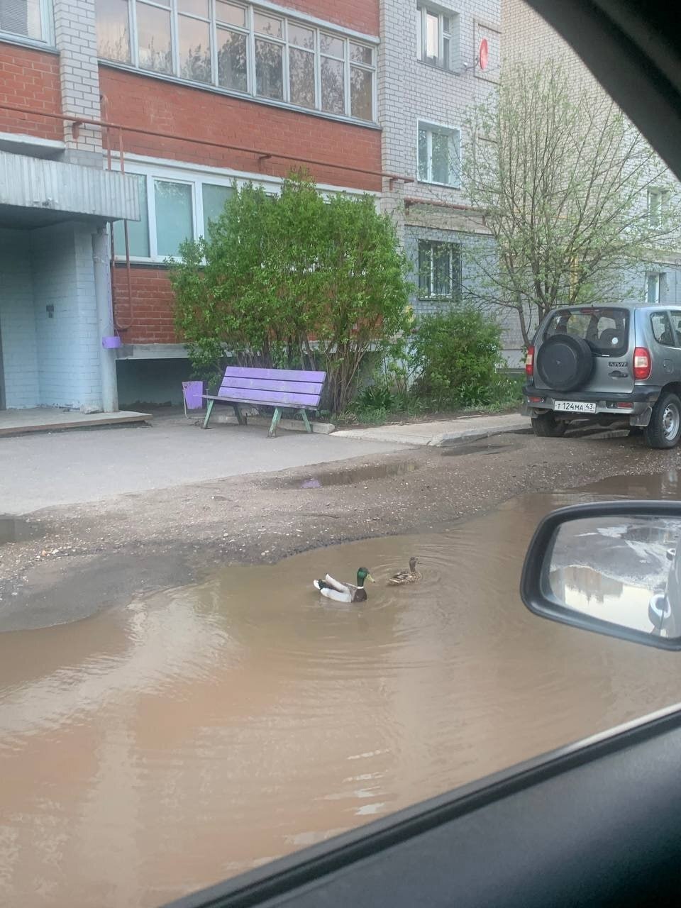 На улице Ленина, в зданиях №134к2 и 134к3, появились утки, привлеченные образовавшимися лужами 🦆