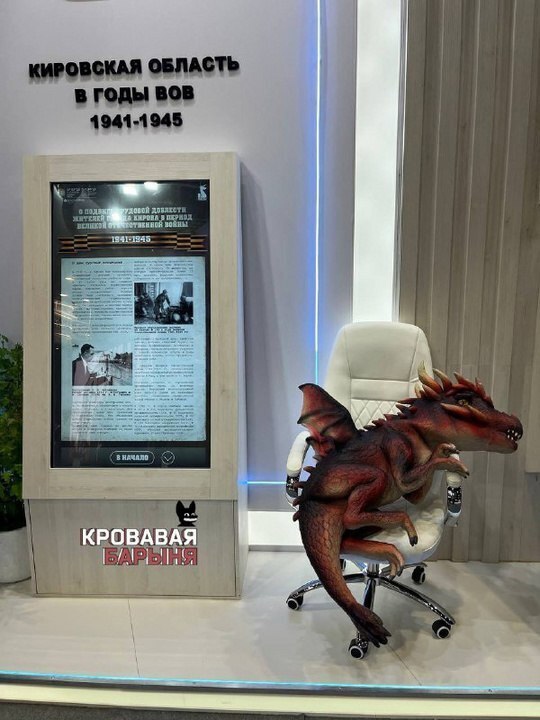 На изображении видно игрушечного динозавра, расположенного в офисном кресле. В подписи к фото она заметила:…