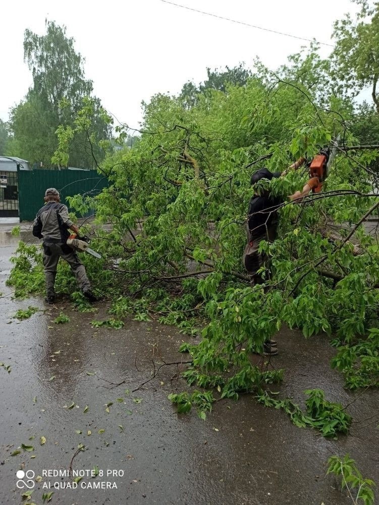Работники очистили от поваленных во время непогоды деревьев улицы города.