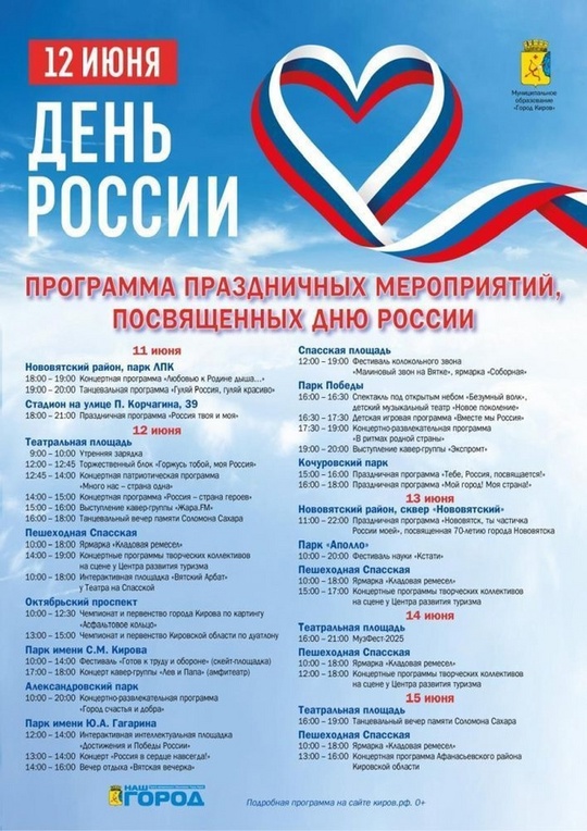 Кировская администрация сообщила о запланированных мероприятиях ко Дню России, который отмечается 12 июня. Горожанам и…