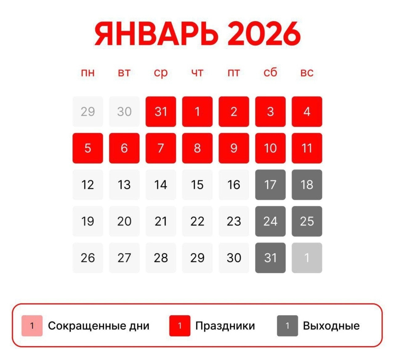 Гражданам России предлагаются 12 дней отдыха в период новогодних праздников: с 31 декабря по 11…