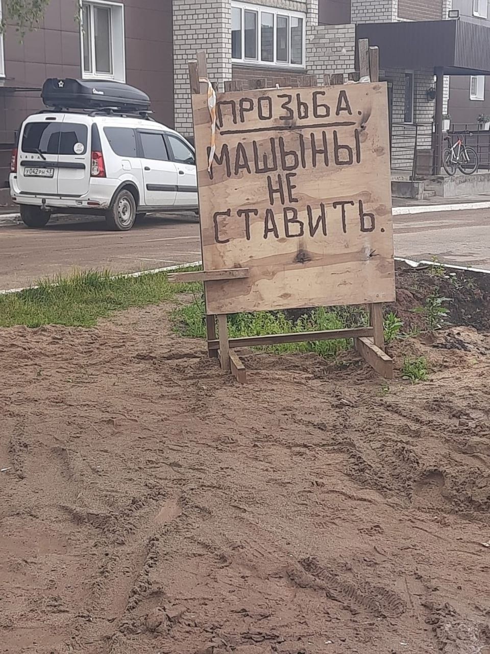 На улице Полевая установлена табличка с просьбой воздержаться от парковки автомобилей.