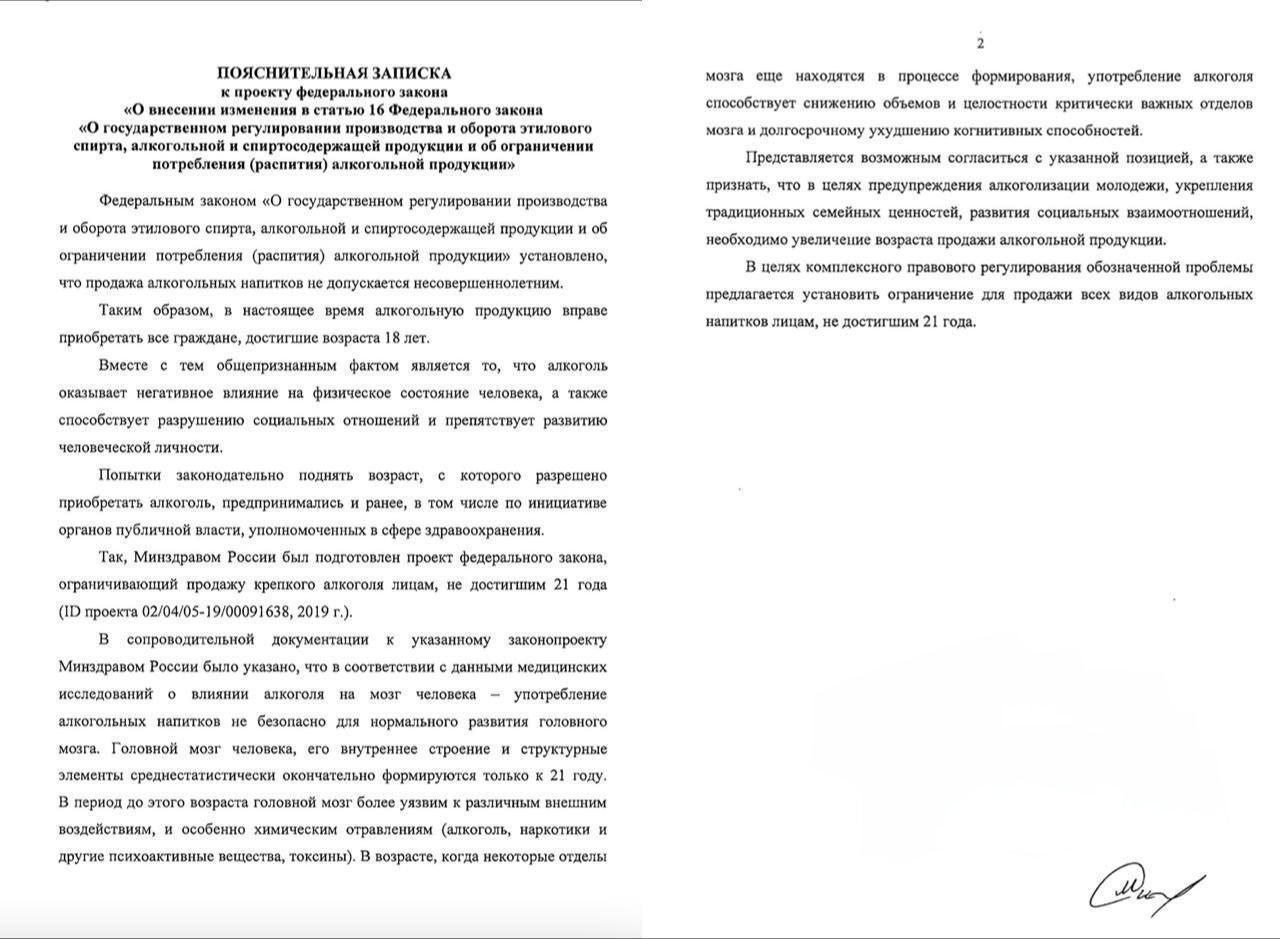 В Госдуму внесён законопроект о запрете продажи алкоголя лицам младше 21 года. В пояснительной записке…