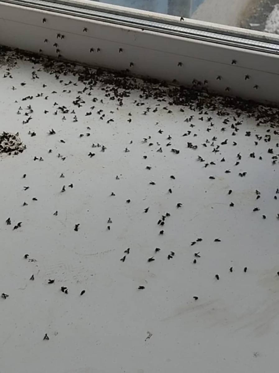 На улице Советской, 64, жильцы общежития уже целый год страдают от нашествия канализационных мух-бабочниц. Насекомые захватили подъезд, лестницы и окна. Местные жители боятся, что вскоре они окажутся и в квартирах.