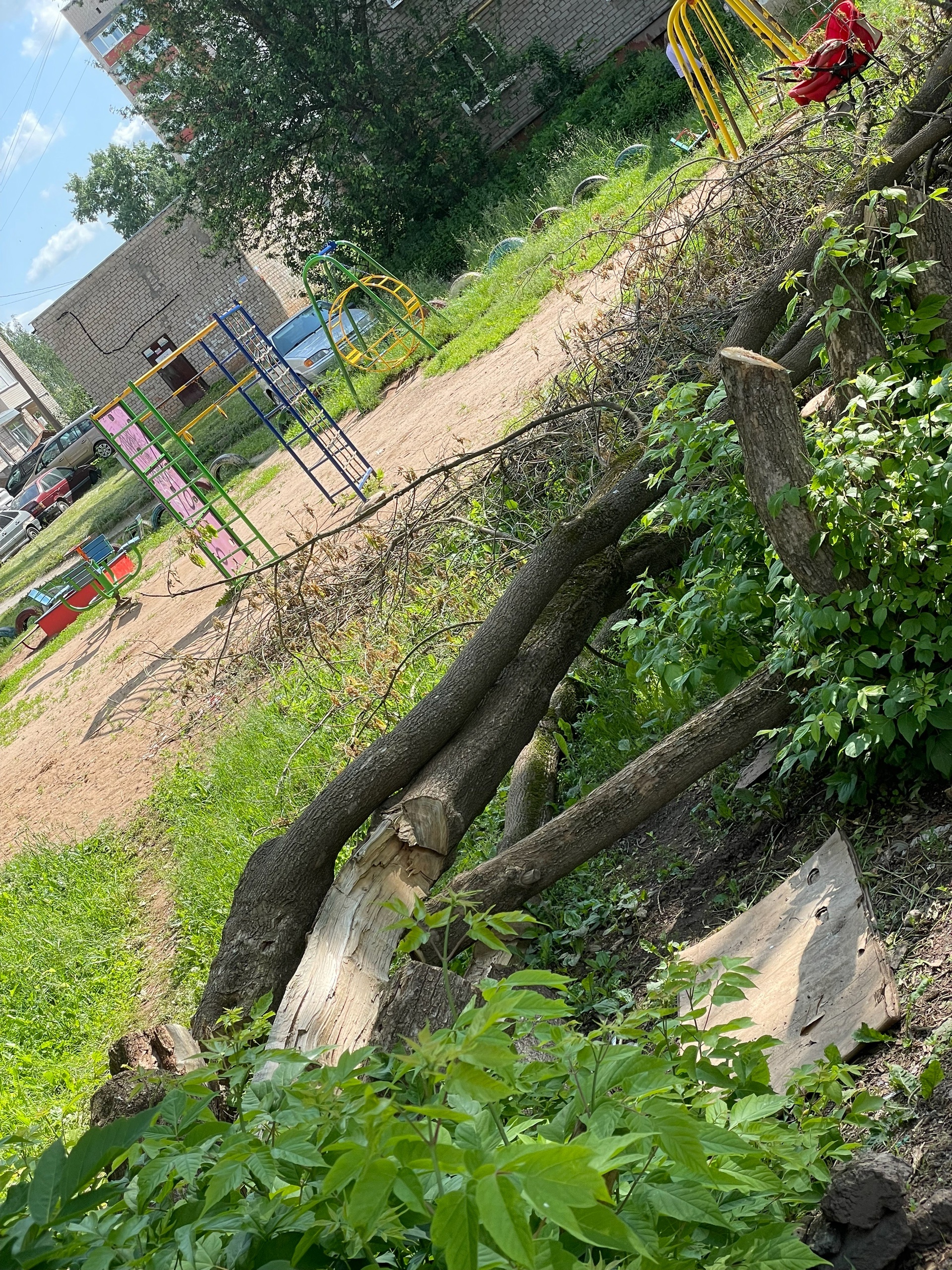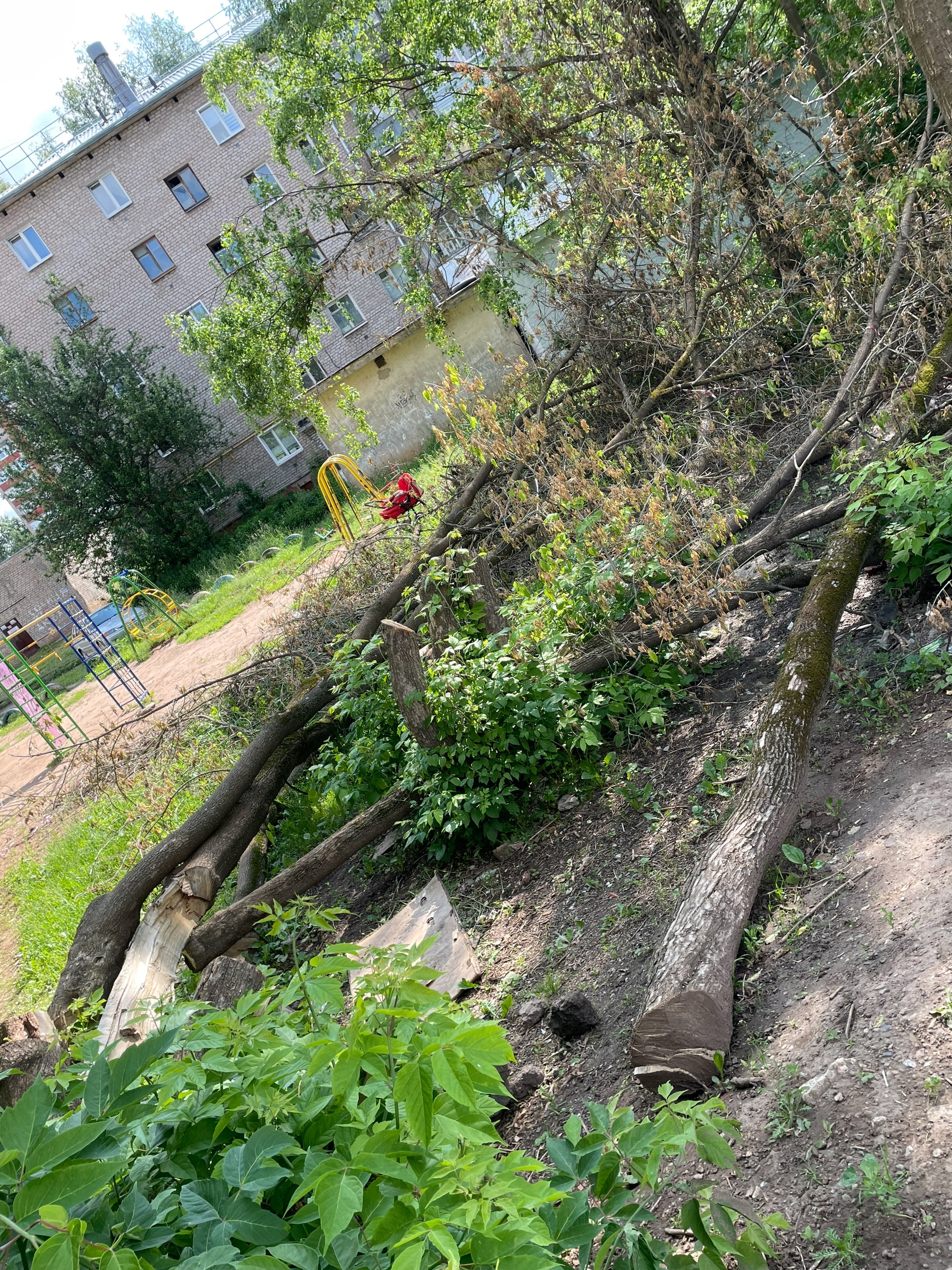 Уважаемые представители администрации! Прошу принять меры! На территории двора по адресам 38 и 40а на улице Некрасова вырубили деревья, которые никому не мешали, а их остатки не могут вывезти более ДВУХ НЕДЕЛЬ! Дети рискуют получить травмы, ведь доступ к детской площадке заблокирован! Кто ответит за эту ситуацию?!?