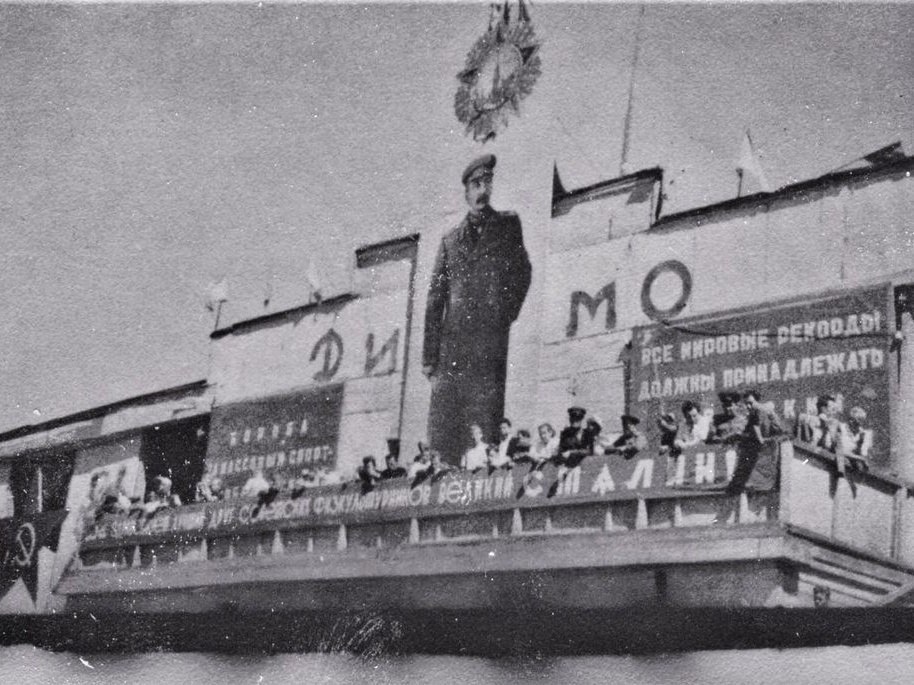 На трибуне внизу появляется лозунг: «Да здравствует верный друг советских физкультурников великий СТАЛИН!». В правом…