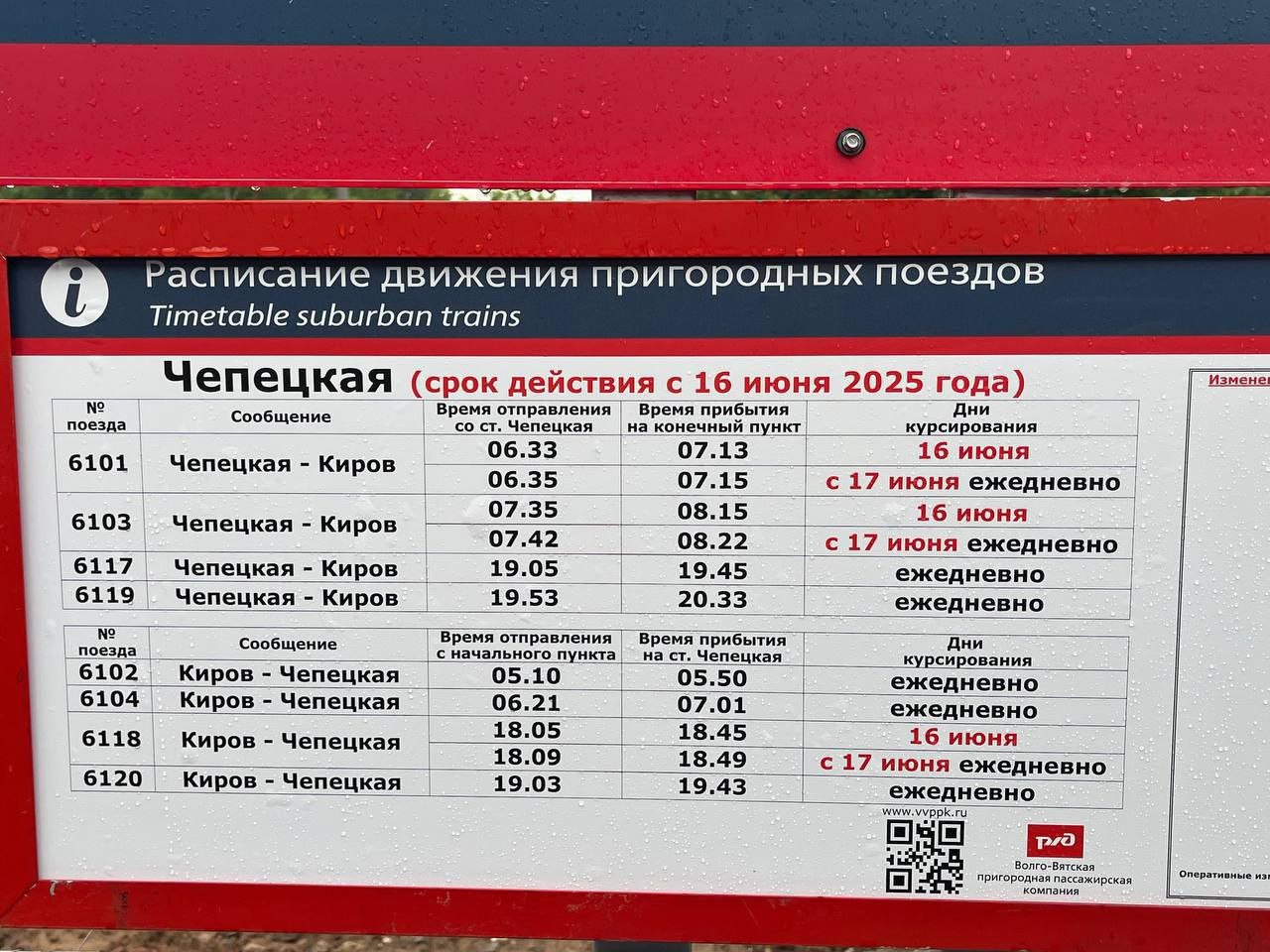 Напоминаем, что в день электричка будет совершать 4 рейса. Время в пути составит 40 минут, а цена билета — 163 рубля. Билет на автобус по маршруту Киров — Кирово-Чепецк стоит 250 рублей, а время в пути превышает час.