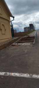 Сектор Чистые пруды. Построили тротуары и велодорожки рядом с церковью. Однако рядом с тротуаром отсутствует дренажная канавка. Грунт возвышается над бордюром. Вот и итог! Ещё один серьёзный дождик — и можно забыть о лестницах. Почему у нас всё делается некачественно?