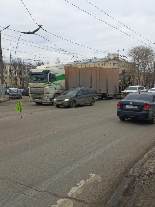 Утром в Кирове произошло серьёзное нарушение работы общественного транспорта. Экскаватор повредил троллейбусную сеть на соединении Октябрьского проспекта и площади Лепсе.